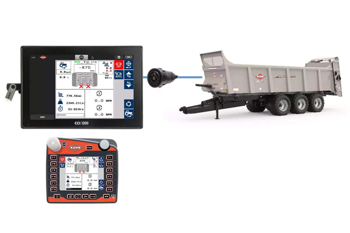 La taille et la conception du terminal permettent un affichage pratique et simultané de deux machines ISOBUS à l’écran. Le terminal CCI 1200 intègre deux fois la fonction UT pour permettre de facilement régler et utiliser un combiné de machines ISOBUS.