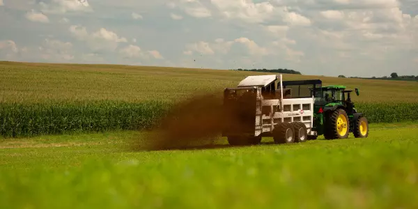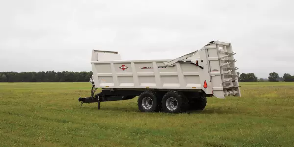 L'épandeur de fumier à poussée hydraulique KUHN Knight HP 140 ProPush®, d'une capacité en tas de 365 pi³, est conçu pour transporter et épandre des matières solides provenant de laiteries et de parcs d'engraissement.