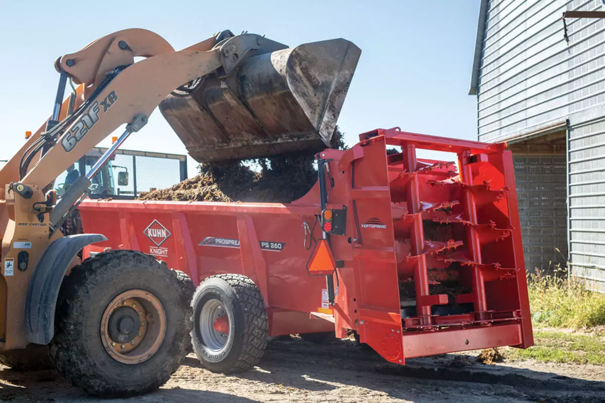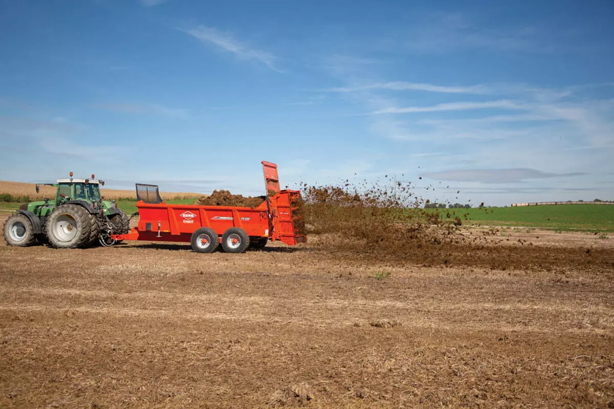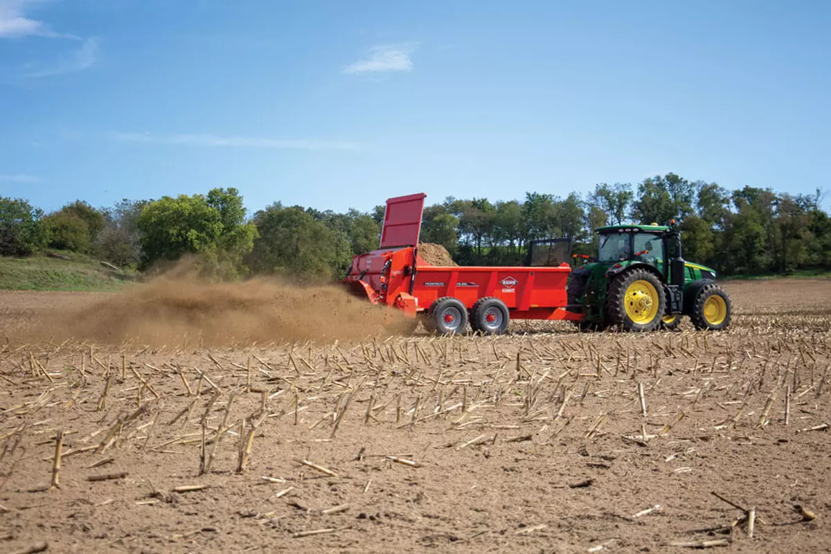 Une construction entièrement en acier constitue la dorsale et le cadre solide de ces épandeurs. Cette conception simple, mais efficace, permet de garder les parois et les panneaux des hérissons alignés pendant toute la durée de vie de la machine. La construction entièrement soudée comprend une flèche d’attelage renforcée qui tire directement de l’essieu pour une solidité et une durabilité accrues. Une charpente en A garde les parois et les panneaux des hérissons alignés correctement, pour une bonne intégrité du caisson. Un fond en tube arrondi, à l’arrière, favorise l’autonettoyage en aidant à prévenir la fragmentation des matières.