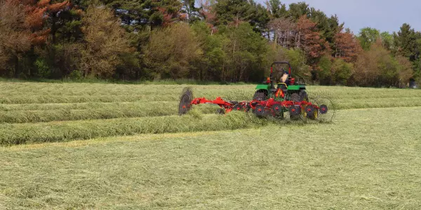 Faites sécher votre foin plus rapidement et récoltez plus tôt grâce aux faneurs KUHN. Nos faneurs donnent du volume efficacement et uniformément au fourrage, ils assurent également un bon rendement sur terrains irréguliers. Les modèles traînés fournissent un transport rapide, facile et sécuritaire, avec des fonctions améliorées qui vous permettront de sortir du champ plus rapidement, pour une efficacité maximale. Avec un large éventail de largeurs de travail et des modèles traînés et portés, nous avons le faneur qui répondra à vos besoins.