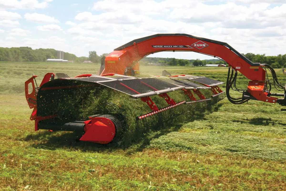 Les ramasseurs de conception commerciale traitent les cultures avec douceur tout en étant construits et testés pour une utilisation extrême. La conception à came centrale, avec grands galets de came avec axe scellés résistants, offre une durée de vie extrêmement longue même dans les conditions les plus difficiles. Les ramasseurs de grande capacité de KUHN sont conçus et construits avec des cadres intégrés pour améliorer leur résistance et leur durabilité, et garder la machine propre, car il n’y a pas d’endroit où la récolte peut s’accumuler.