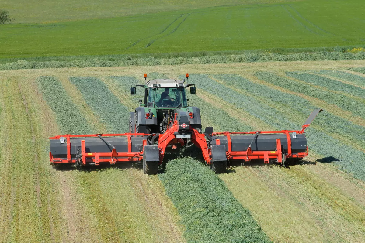 Les andaineurs à tapis MM 950 et 1090 offrent huit options de distribution différentes. Avec la capacité de regrouper la récolte au centre, à gauche, à droite, en la divisant, ces andaineurs peuvent s’adapter à toutes les conditions pour créer des andains répondant au mieux à leurs besoins de récolte.