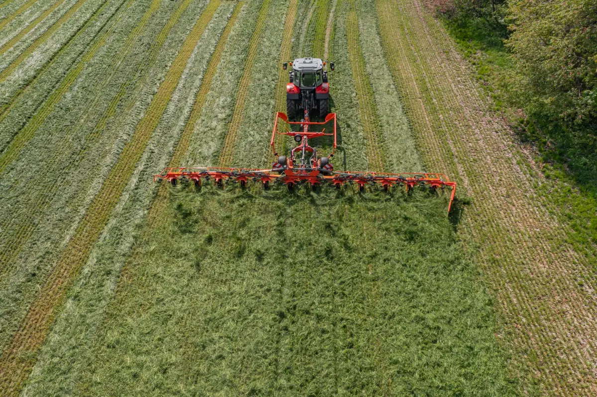 Les rotors OptiTedd offrent un angle d’attaque prononcé pour une inversion complète de la récolte et un séchage rapide et uniforme. La conception améliorée du rotor augmente la robustesse et garantit un fanage efficace dans toutes les conditions. Les rotors de petit diamètre, disponibles sur les modèles GF 7903 T/8703 T/10803 T/13003 T/17003 T, présentent une distance minimale par rapport au centre de gravité pour réduire les besoins en portance et en puissance. Les rotors de grand diamètre, présents sur les GF 5203 THA/7803 T/7803 THA, sont excellents pour l’épandage de cultures longues et denses.