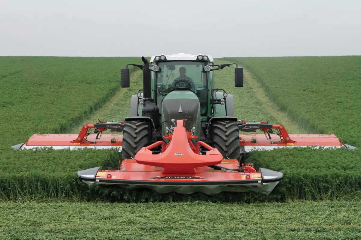 Les faucheuses-conditionneuses frontales série FC 25 F de KUHN, avec des largeurs de travail de 10 pi 2 po et 11 pi 6 po, peuvent être utilisées seules ou comme élément d’une faucheuse-conditionneuse triple, ce qui vous permet de couper jusqu’à 32 pi 6 po en un seul passage.