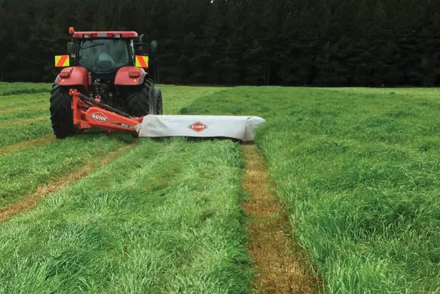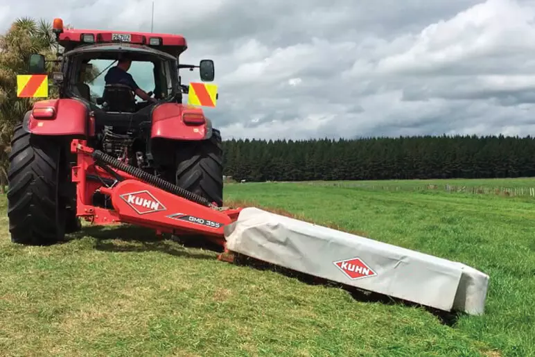La faucheuse GMD 355 a un entraînement direct par l’entremise du premier disque dans la barre de coupe de série 100. Cela permet d’éviter de capturer des cultures provenant d’andains déjà réalisés.