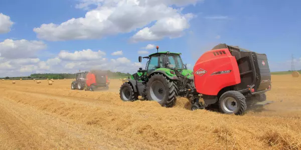 Presses à balles rondes à chambre variable conçues pour produire des balles rondes 4x5 et 4x6 denses et de haute qualité.