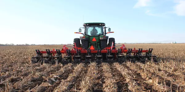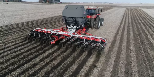 Le Gladiator® traîné est disponible en modèles de 8, 12 et 16 rangs, et un espacement des rangs de 30 po. Les pneus métriques 445 et les essieux à balancier robustes permettent de transporter jusqu’à 9 tonnes d’engrais sec ou 1 000 gallons d’engrais liquide sur le châssis.