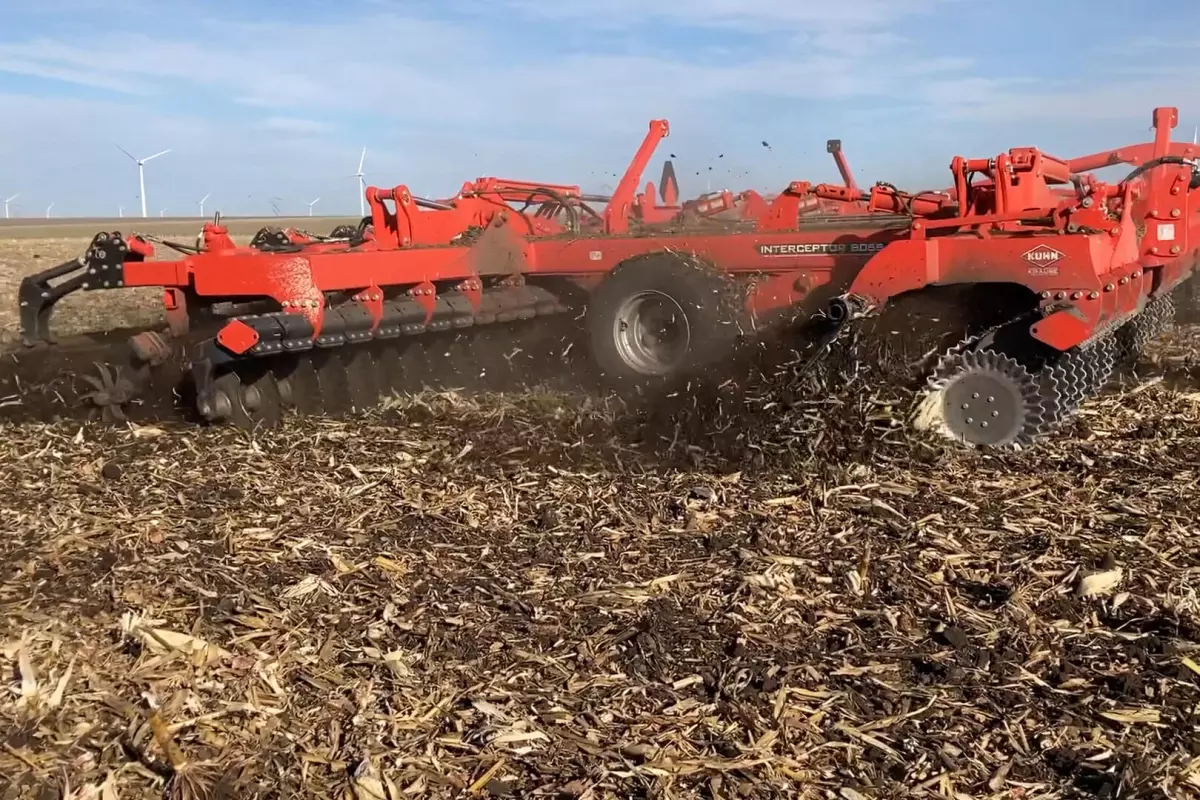 L’Interceptor 8055 de KUHN Krause assure un travail de conservation du sol à haute vitesse pour maîtriser la croissance des mauvaises herbes tenaces et résistantes aux produits chimiques, tout en calibrant et en répartissant uniformément les résidus résistants sur l’ensemble du profil du sol travaillé. Cela permet de tuer les mauvaises herbes, de limiter le mouvement potentiel des résidus emportés par le vent, d’augmenter la matière organique du sol en contribuant à la décomposition des résidus et de prévenir la formation d'un tapis de résidus sur ou sous la surface du sol susceptible d’empêcher le contact entre les semences et le sol et le mouvement de l’humidité et des nutriments à travers le profil. Le système de finition Star Wheel™ équipé d’accessoires de finition 24/7® permet d’obtenir une finition homogène et uniforme du champ.